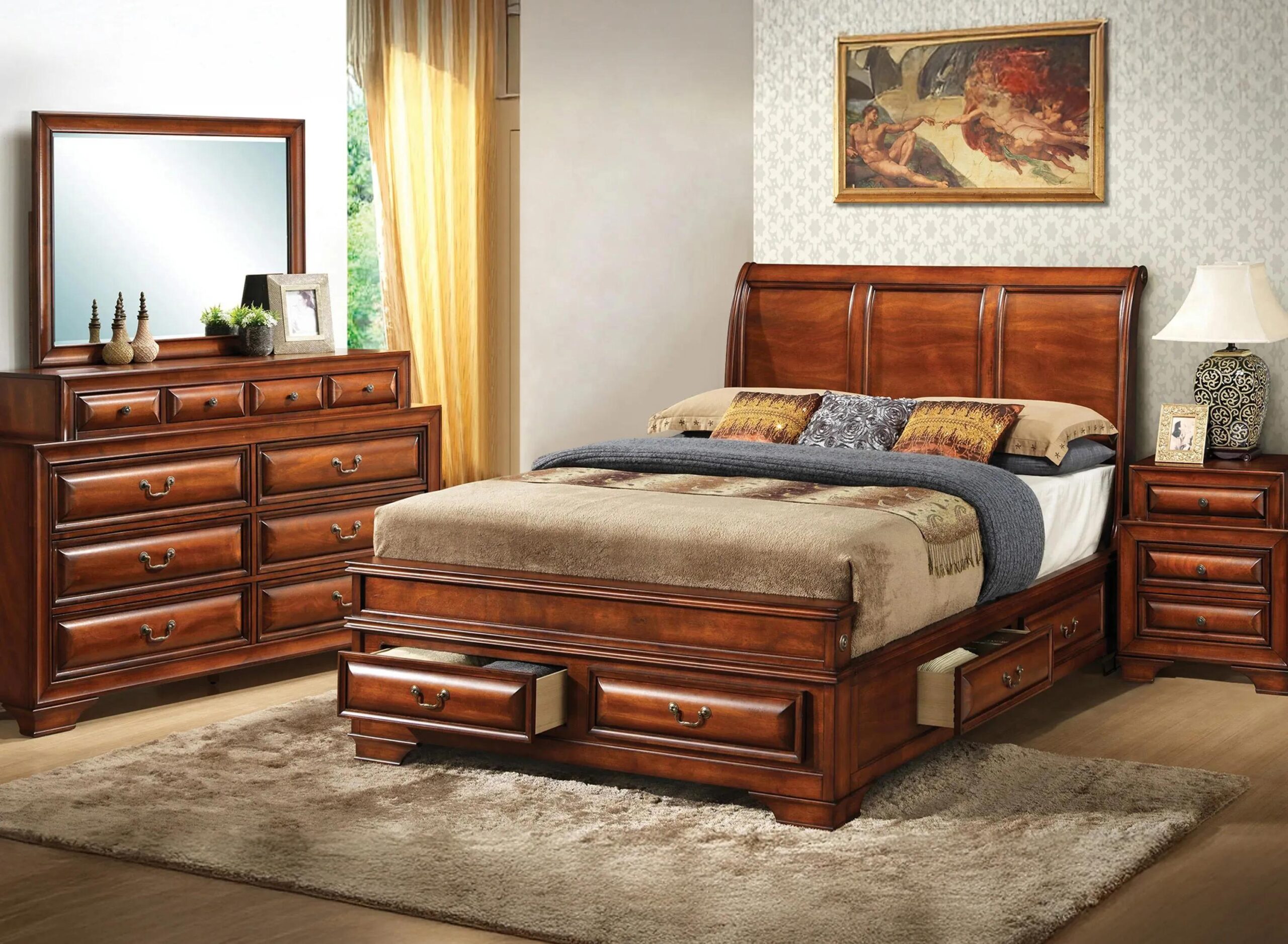 This Sarasota 4-pc. king storage bedroom set features dovetailed joints with hardwood and engineered wood frames. Tons of storage options with 6 underbed drawers, 10 drawers in the dresser and 3 in the nightstand.
