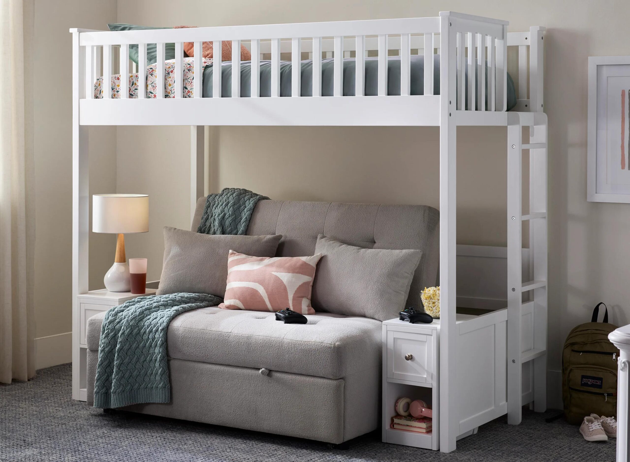 Turn their room into the ultimate hangout with the Sawyer, a sleep setup that keeps up with every plan, mood, and last-minute sleepover. This one-of-a-kind bunk bed and klik-klak combo is designed for the way tweens and teens like to study, lounge, game, and crash, all in one smart footprint.