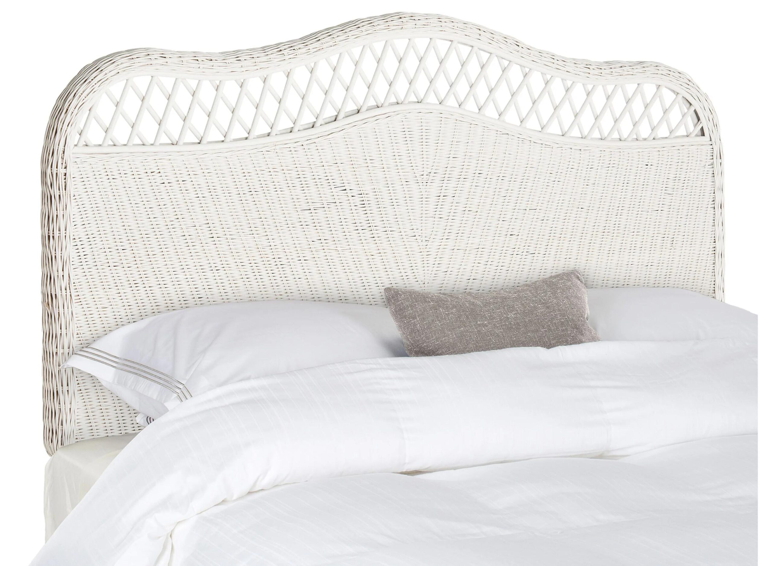 Choose this intricately woven Sephina Full Mounted Headboard for a touch of elegance in coastal and country bedrooms. Sephina pays homage to traditional designs with its camelback silhouette, while its overall white rattan and airy open trellis work give a chic modern upgrade.