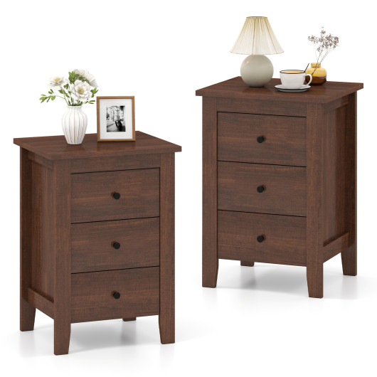 Set of 2 Nightstand End Beside Table Drawers-Walnut