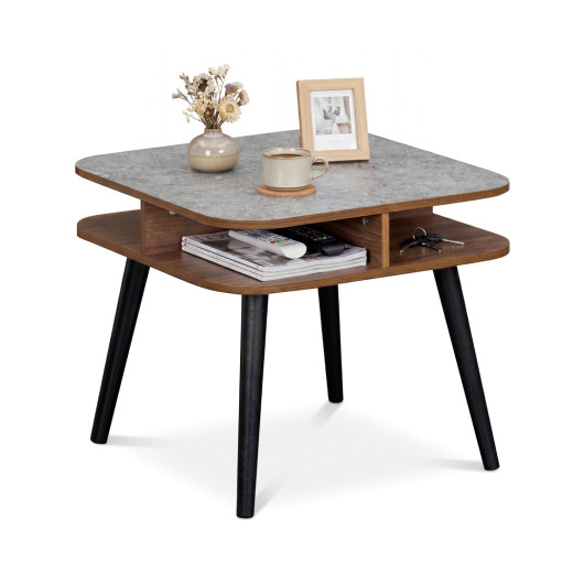 Side Table Faux Marble End Table with Storage Shelves and