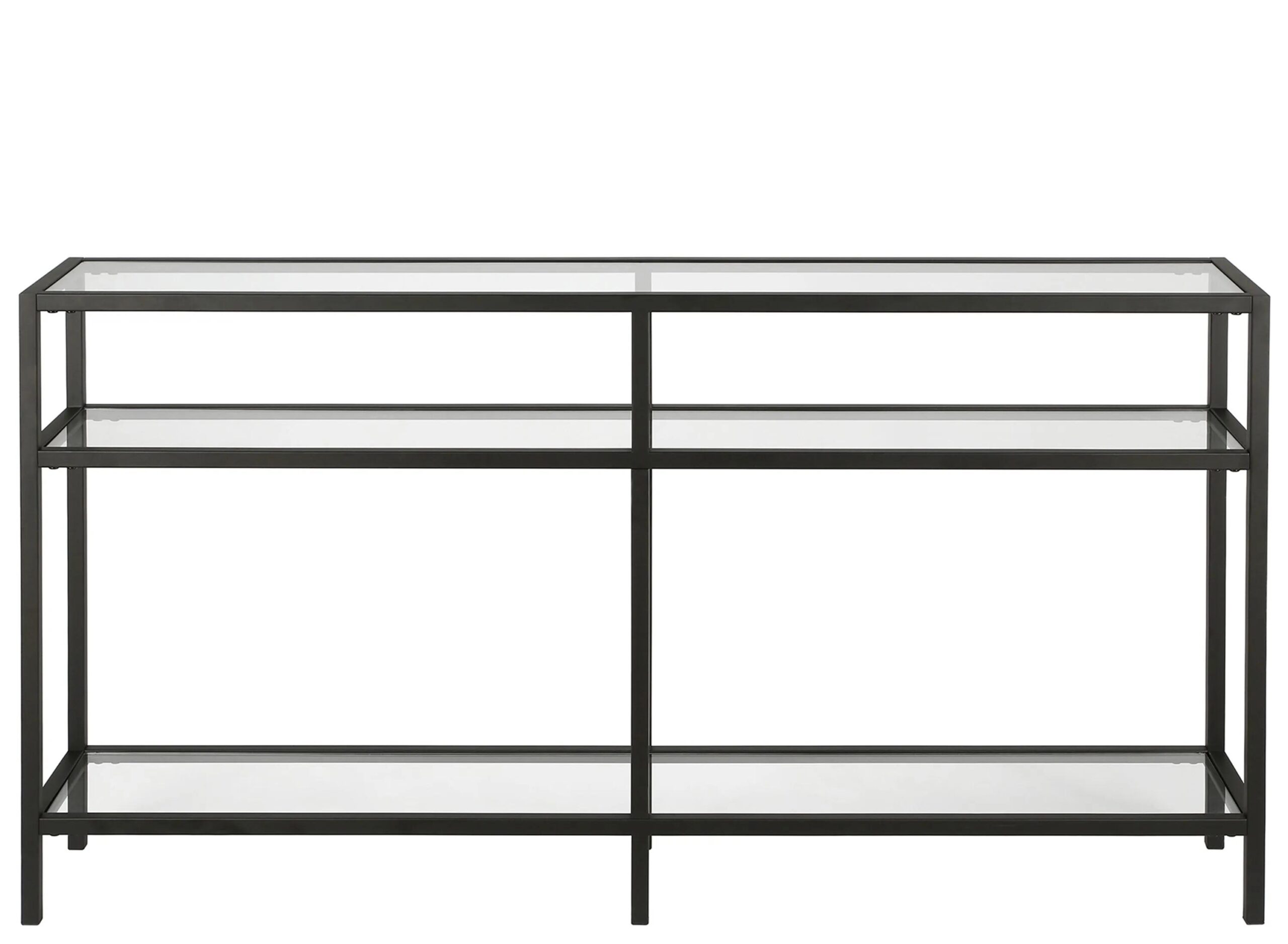 This modern industrial coffee table combines design with function. Create a warm welcome with the clean lines of this 55″ console table. Whether tucked behind the sofa or a display for a menagerie of trinkets, this console table is the perfect backdrop to create a magazine-ready display.