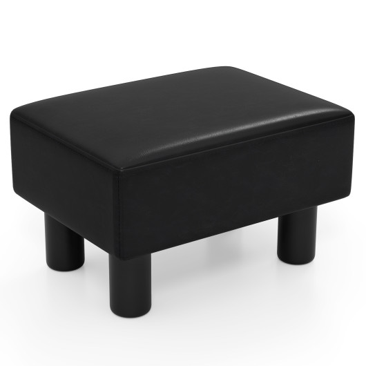 Small PU Leather Rectangular Seat Ottoman Footstool-Black