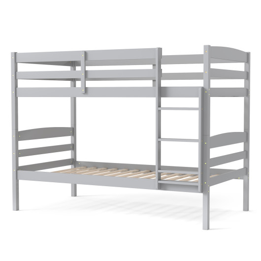 ● 14+14 wooden slats enhance stability for reliable usage● Solid wood frame provides great sturdiness and enhanced support ● The bunk bed can be configured into 2 separate twin size beds● 12″/30 cm full-length guardrails for all-round protection ● Comes with integrated ladder for