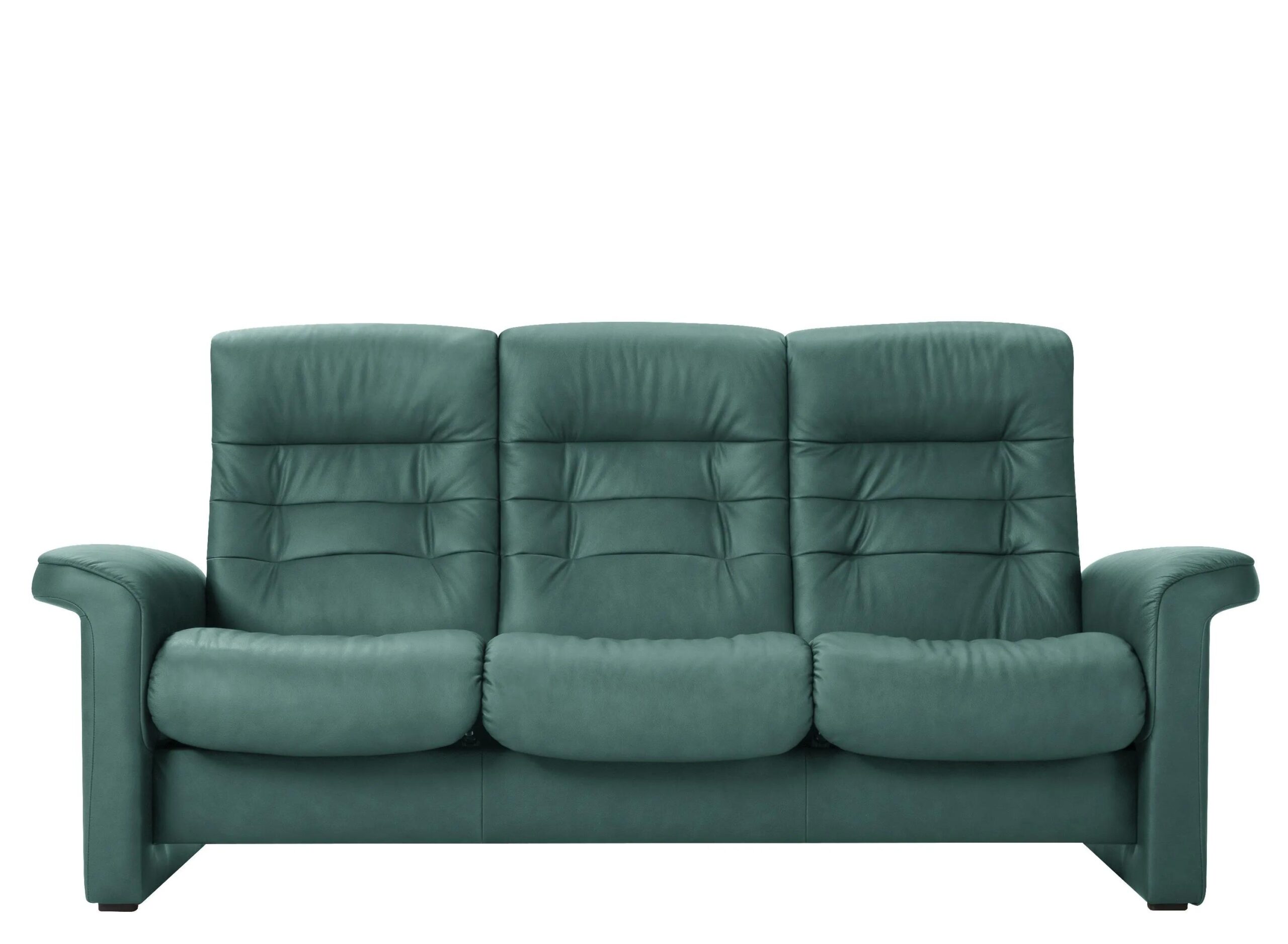 If you want to add contemporary style and sophistication to your home, the Stressless Sapphire leather reclining high-back sofa is the right choice. Sleek curves and top-grain leather upholstery set the tone for your living room or den, and deep seating with pushback reclining gives you the oppor