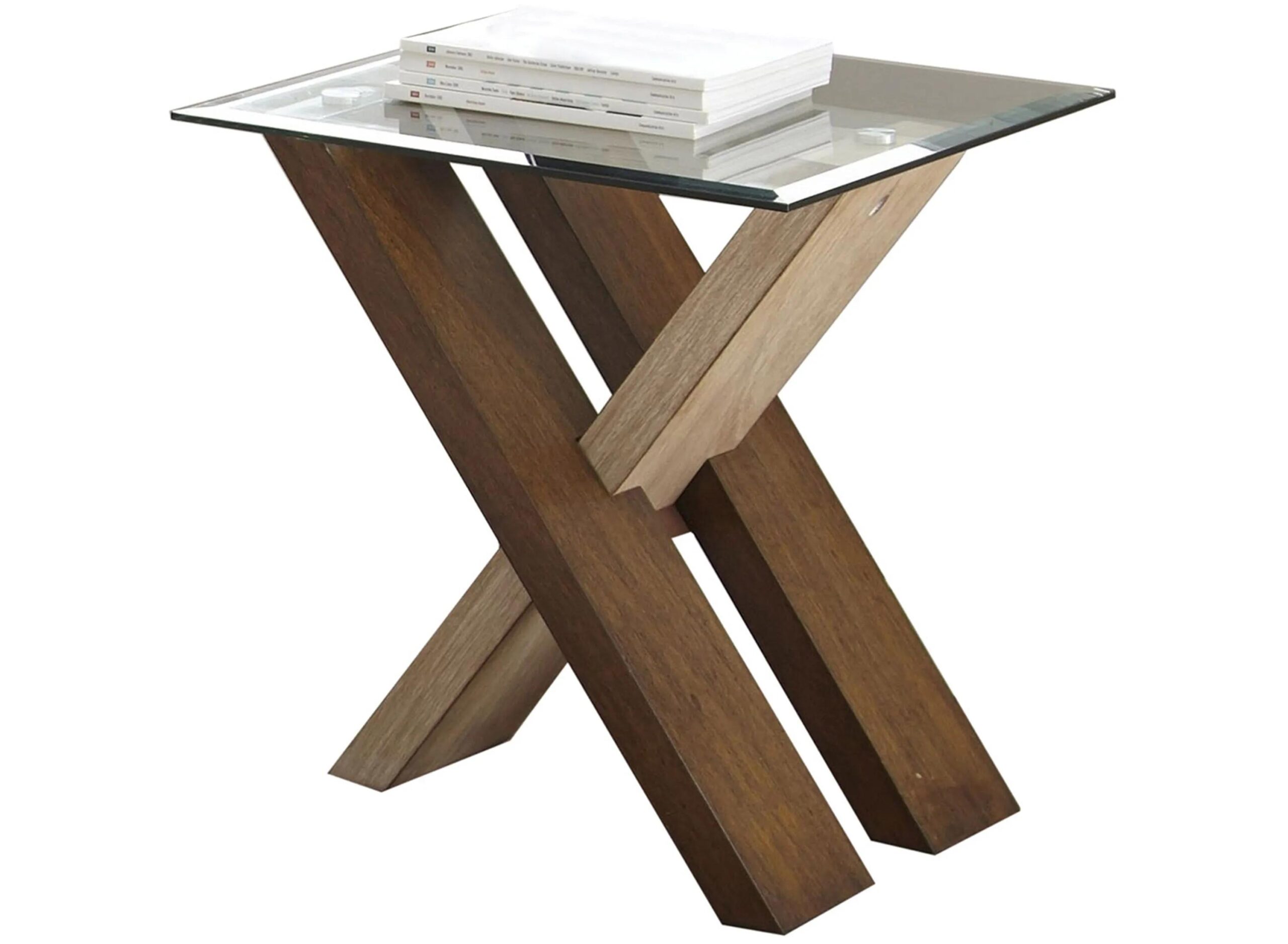 The Tasha Occasional Collection mixes modern appeal with a rustic flair. Beveled glass tops rest on a cross tie wooden base in a contrasting natural and deep cherry finish. Sturdily constructed using MDF with birch veneers for smooth surface and dimensional stability.