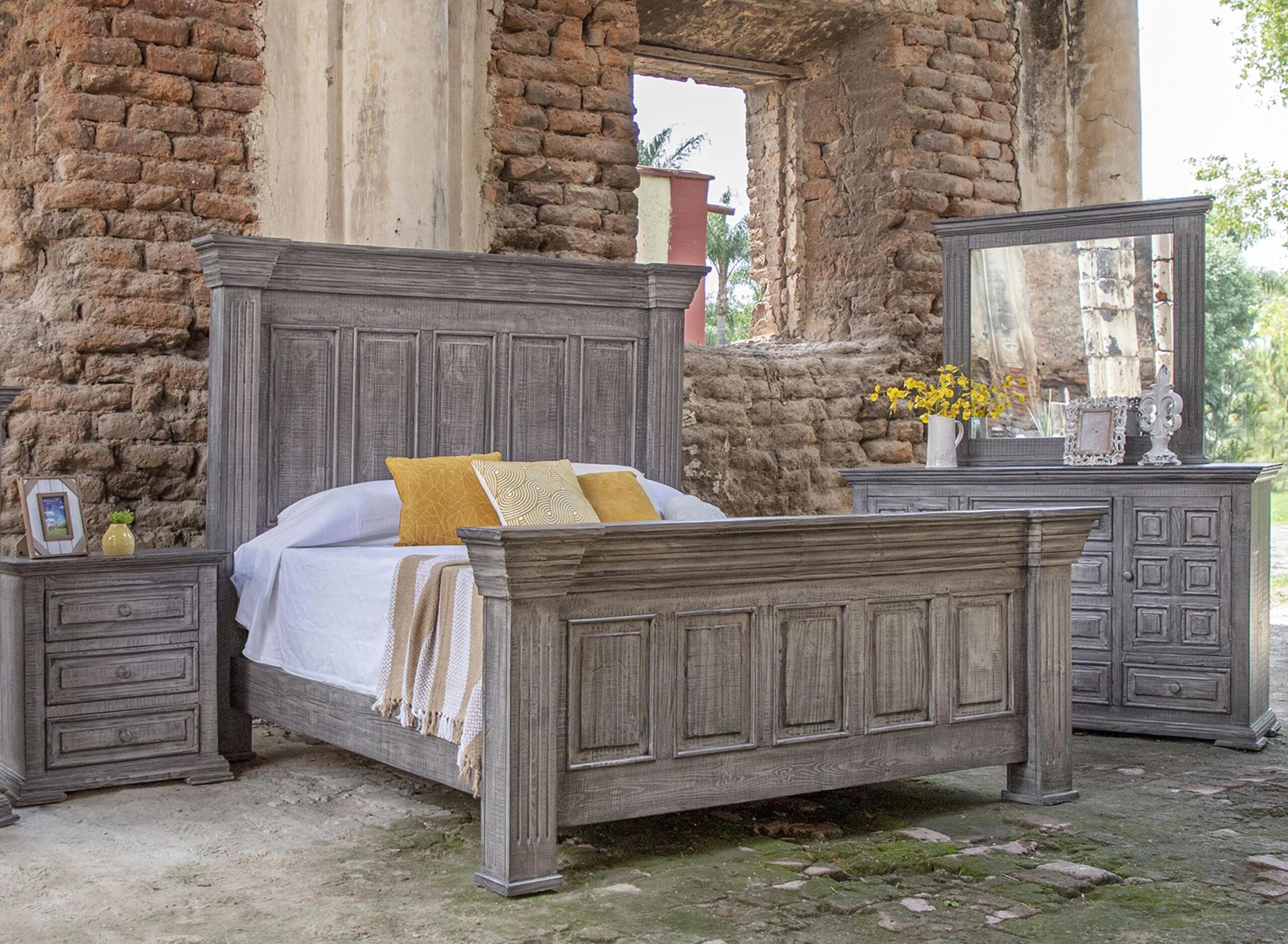 Generous in scale with unparalleled beauty, this beautifully designed Terra 4-pc. California king bedroom set was specifically designed to make a statement for any bedroom in your home. Picture framed and mitered joints add depth and appeal, while the old world craftsmanship and finishing techniq
