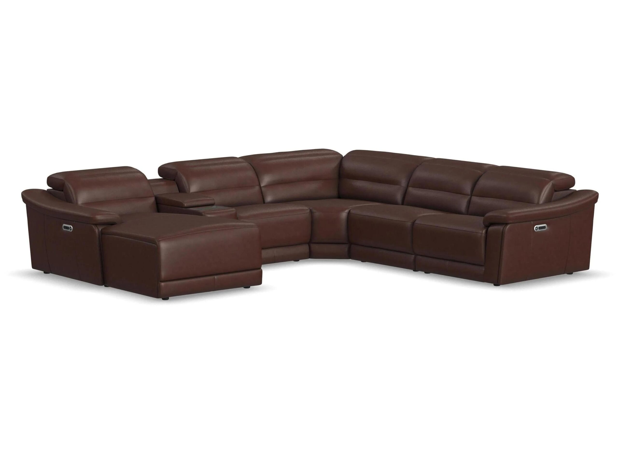 Make a statement in comfort and craftsmanship with the Tucker 6-pc. triple power leather sectional. Designed for those who appreciate both refined style and top-tier relaxation, this collection feels as fabulous as it looks.