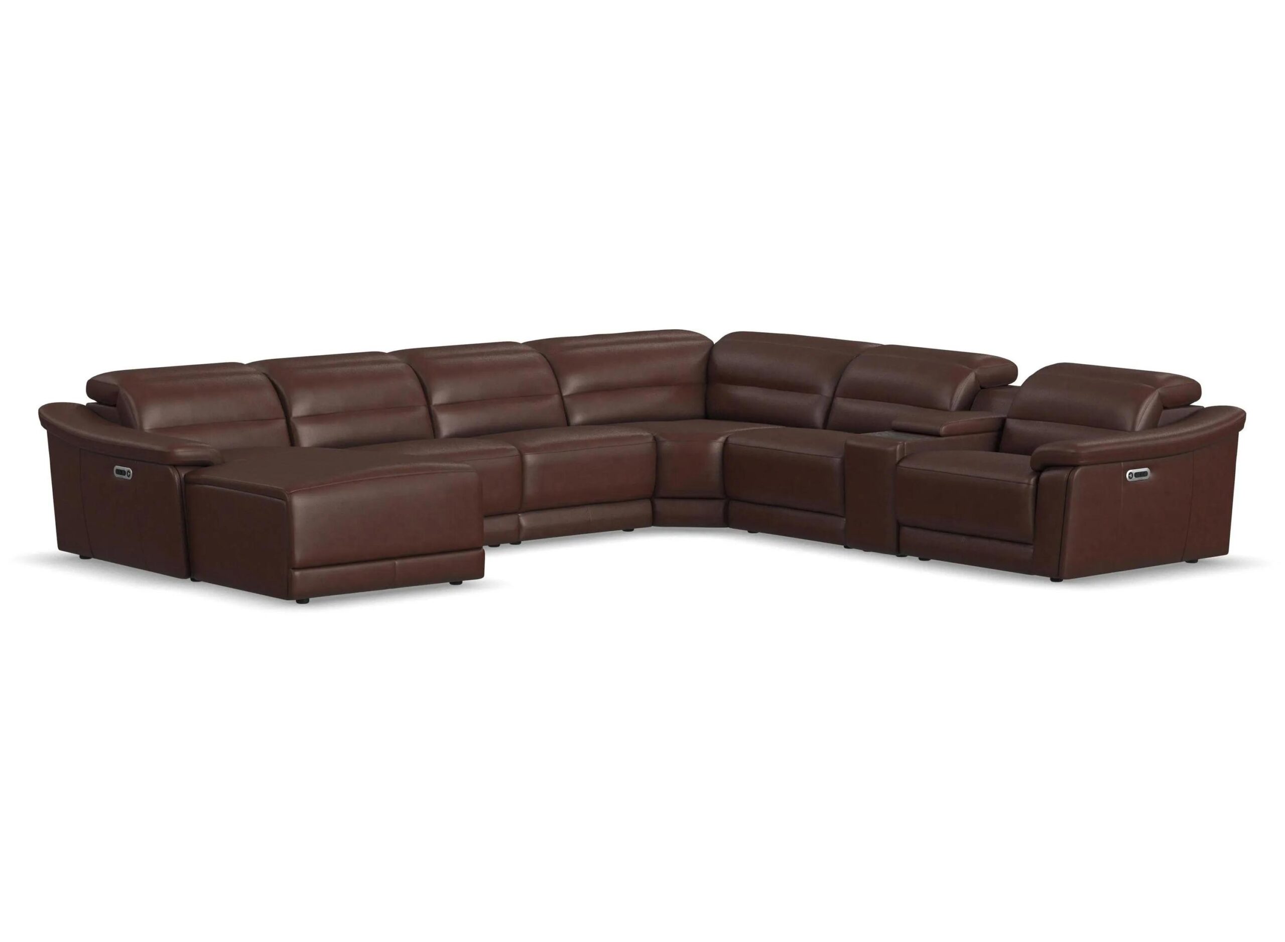 Make a statement in comfort and craftsmanship with the Tucker 7-pc. triple power leather sectional. Designed for those who appreciate both refined style and top-tier relaxation, this collection feels as fabulous as it looks.