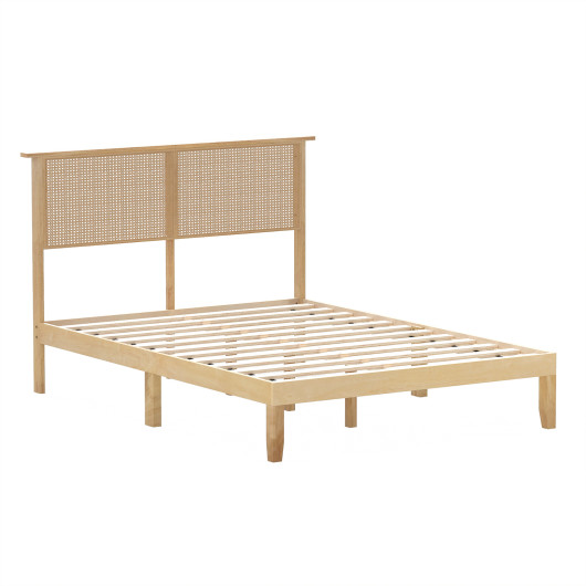 Twin/Full/Queen Size Bed Frame with Rattan Headboard-Full Size