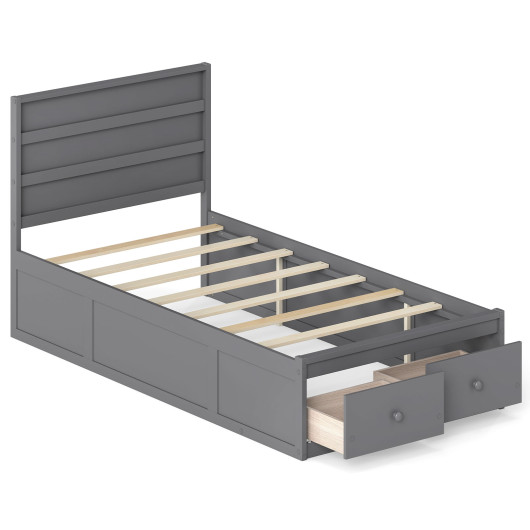 Twin Size Bed Frame with Storage Drawers and Headboard-Gray