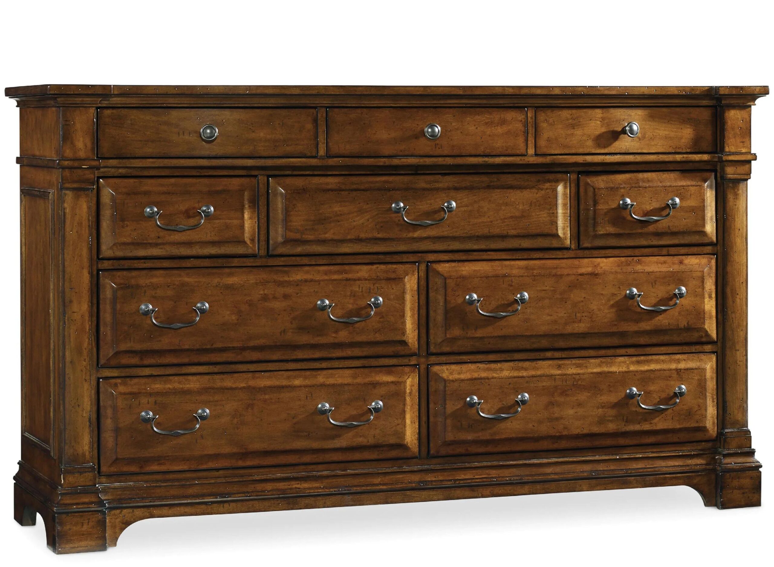In a warm, chestnut-colored rustic finish over figured Alder Veneers accented by classic knob and handle hardware in an aged copper finish, the Tynecastle Chest projects a Hunt Country vibe. Ten roomy drawers, with the top drawers felt-lined, and the bottom drawers are cedar lined.