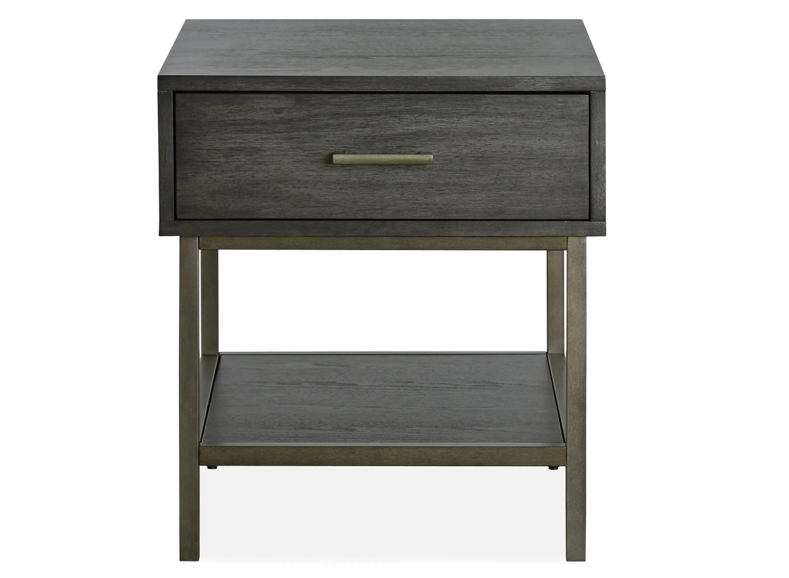 Walnut veneers, smoke glass and pewter metal combine for retro appeal in the Tyrus rectangular end table. A decidedly “mod” design aesthetic is created as the wood table cases extend beyond the square base frames, appearing to float with finesse.