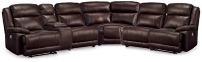 VonKurt 6-Piece Power Leather Reclining Modular Sectional with Console, Dark