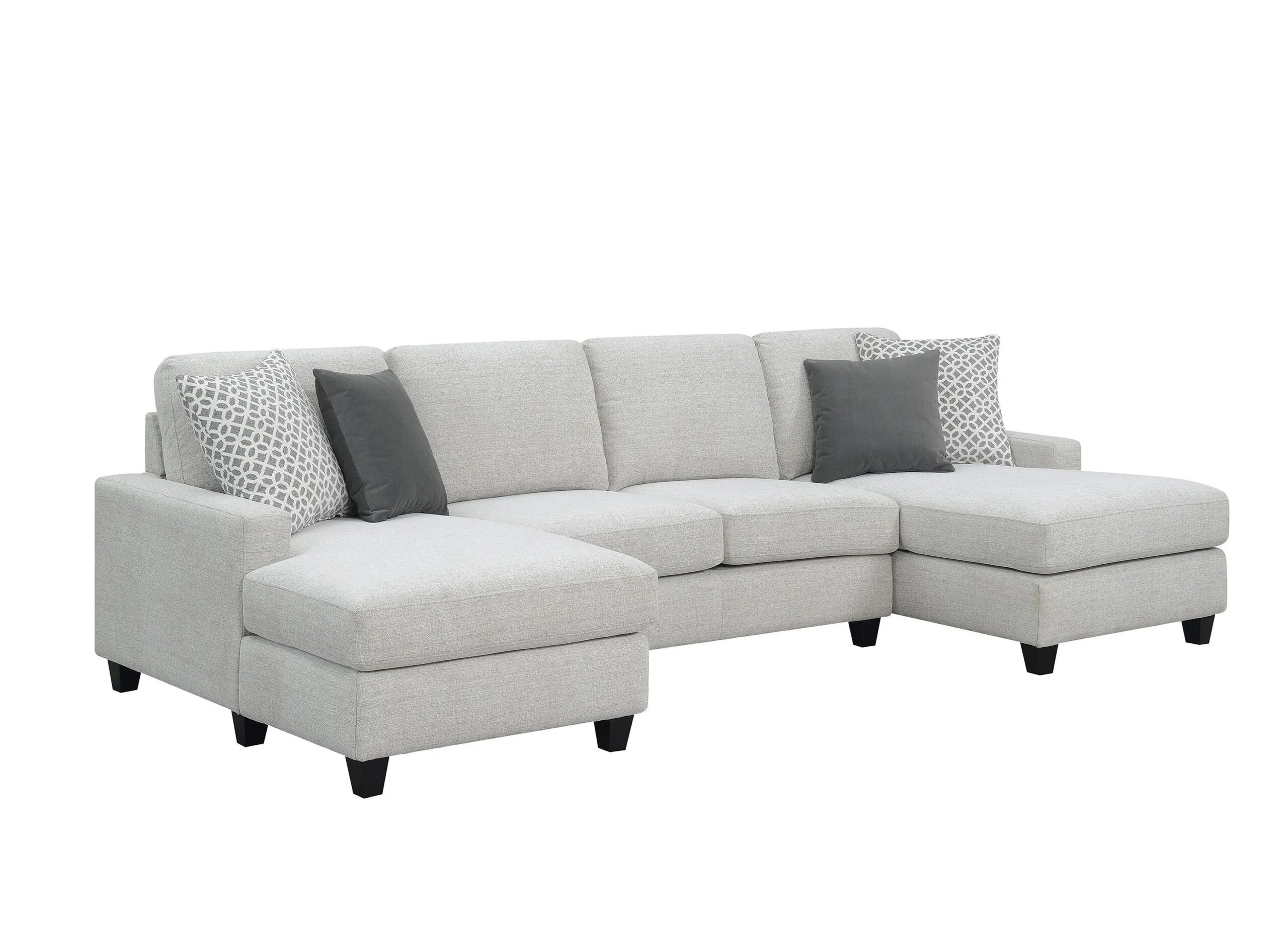 Composed in a clean, Contemporary & Modern style the Walker chaise sectional is a u-shaped sectional with a smaller footprint. This collection’s pale gray fabric with dark gray lowlights provide a look of ease while adding exceptional comfort.