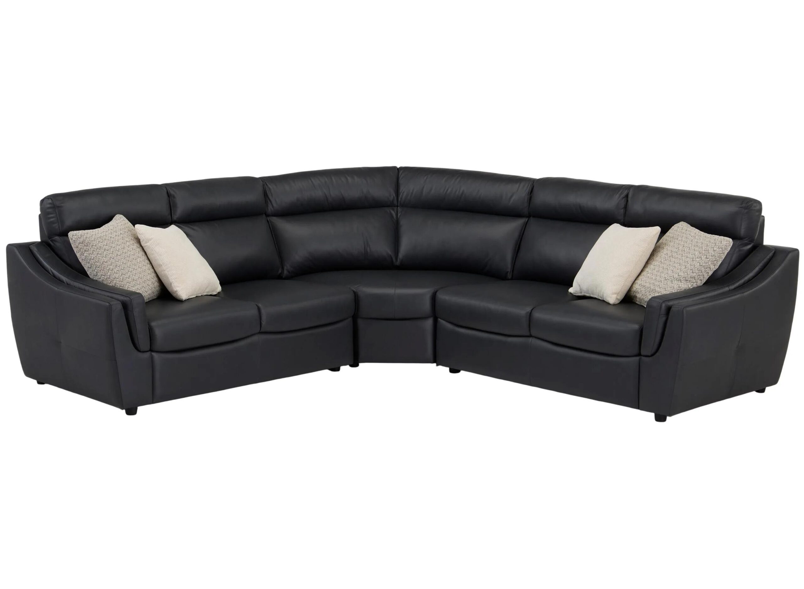 It’s easy to go with the flow of the Warner 3-pc. leather sectional, featuring a contemporary style with a smooth edge. The flowing lines of gently sloped track arms and softly scooped seat cushions create a sense of movement and relaxation.