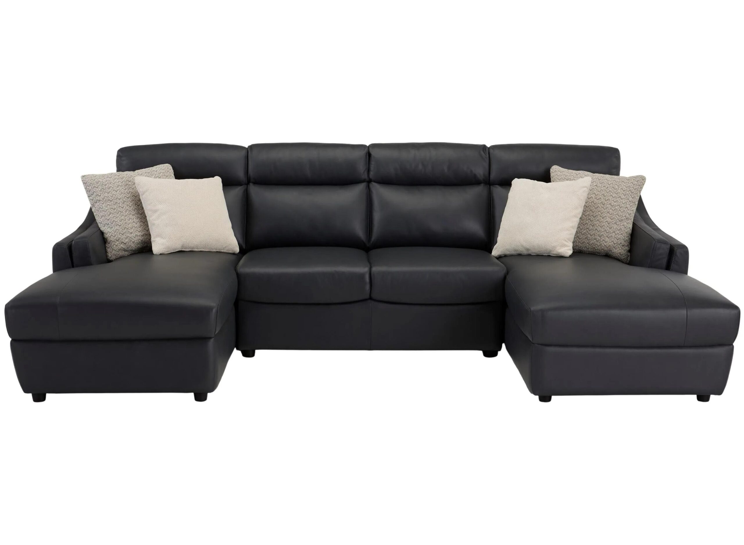 It’s easy to go with the flow of the Warner 3-pc. leather sectional, featuring a contemporary style with a smooth edge. The flowing lines of gently sloped track arms and softly scooped seat cushions create a sense of movement and relaxation.