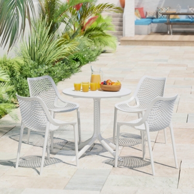 Enjoy stylish dining indoors or outdoors on the balcony or patio with this versatile 5-piece resin patio dining set. Crafted for effortless living, the all-weather polypropylene (PP) material is resistant to fading and damage, ensuring lasting beauty in any climate.