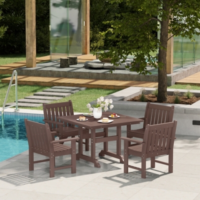 With a blend of traditional charm and contemporary flair, the Poly 5-Piece Square Table Garden Arm Chair Dining Set adds timeless style and comfort to your outdoor space. Crafted from durable HDPE (High-Density Polyethylene), this set is fade and UV resistant, ensuring it will maintain its vibran