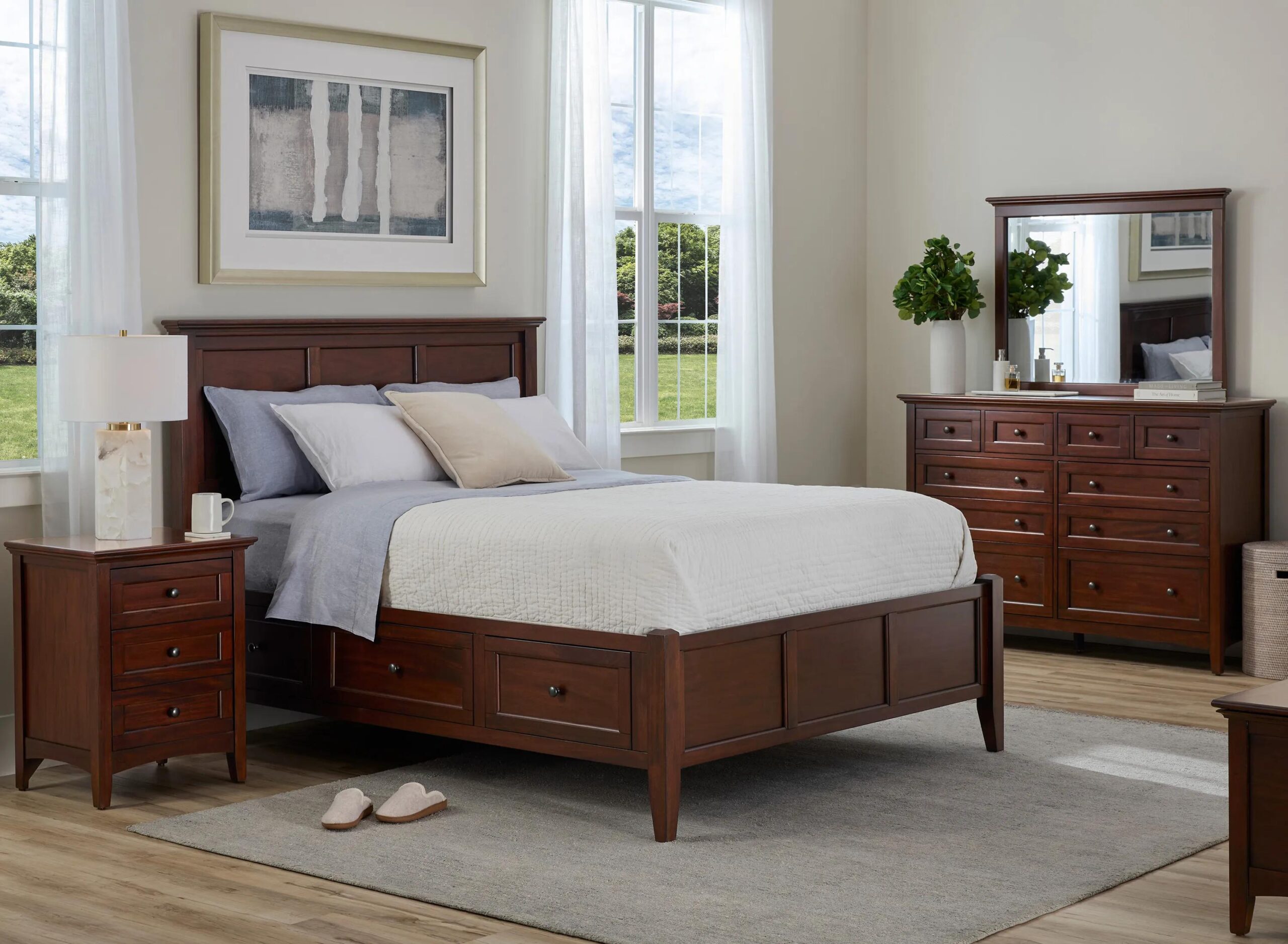 Experience the warmth and personality of the Westlake 4-pc. Platform Bedroom Set w/ Storage Bed. Crafted from solid plantation-grown mahogany, this collection is built to withstand the test of time.