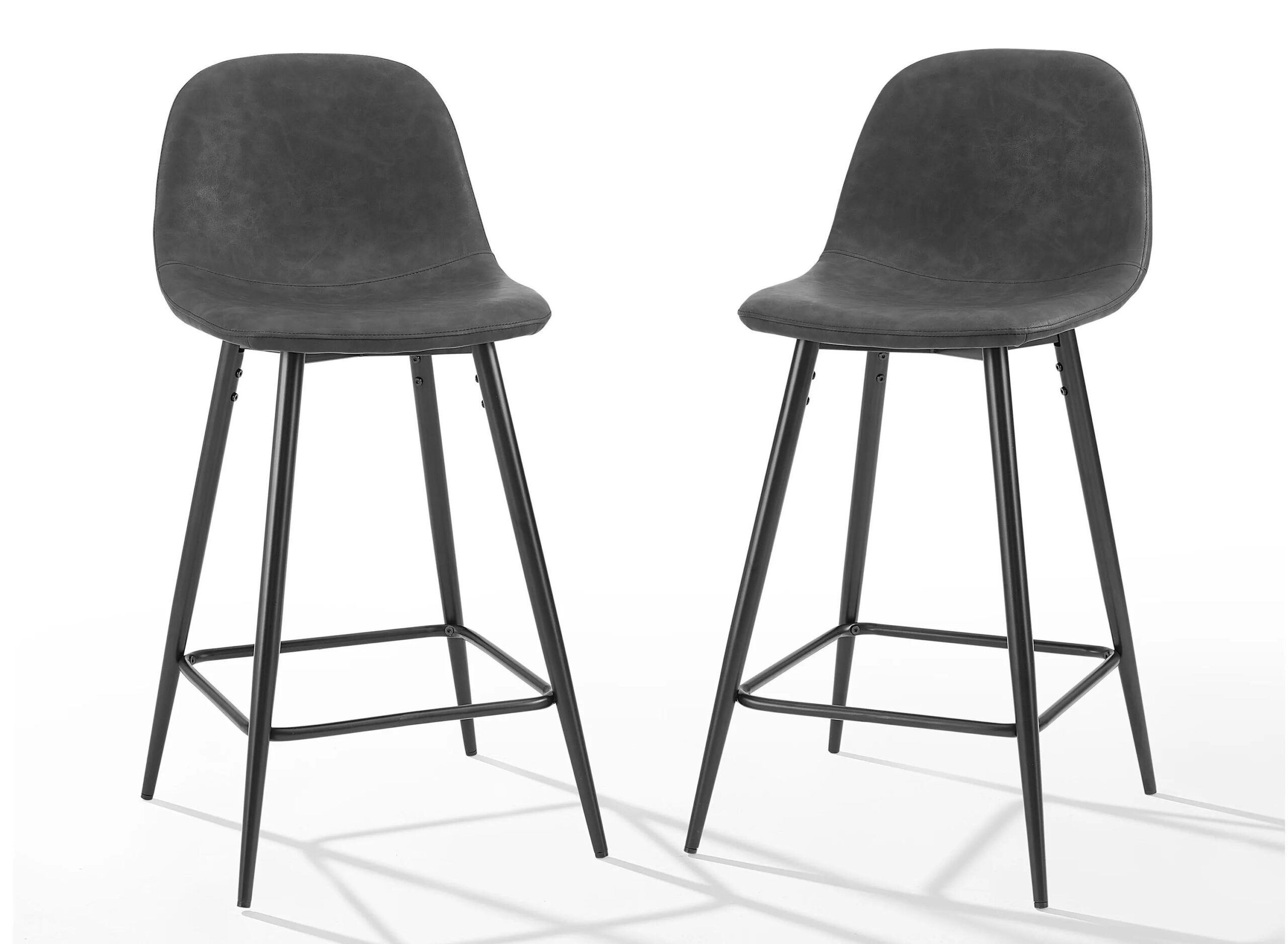 With a sleek silhouette and modern design elements, the Weston 2-pc. Counter Stool Set is a unique addition to your dining or kitchen area. Durable and comfortable, this stool is upholstered in high-quality faux leather and sits atop tapered steel legs.