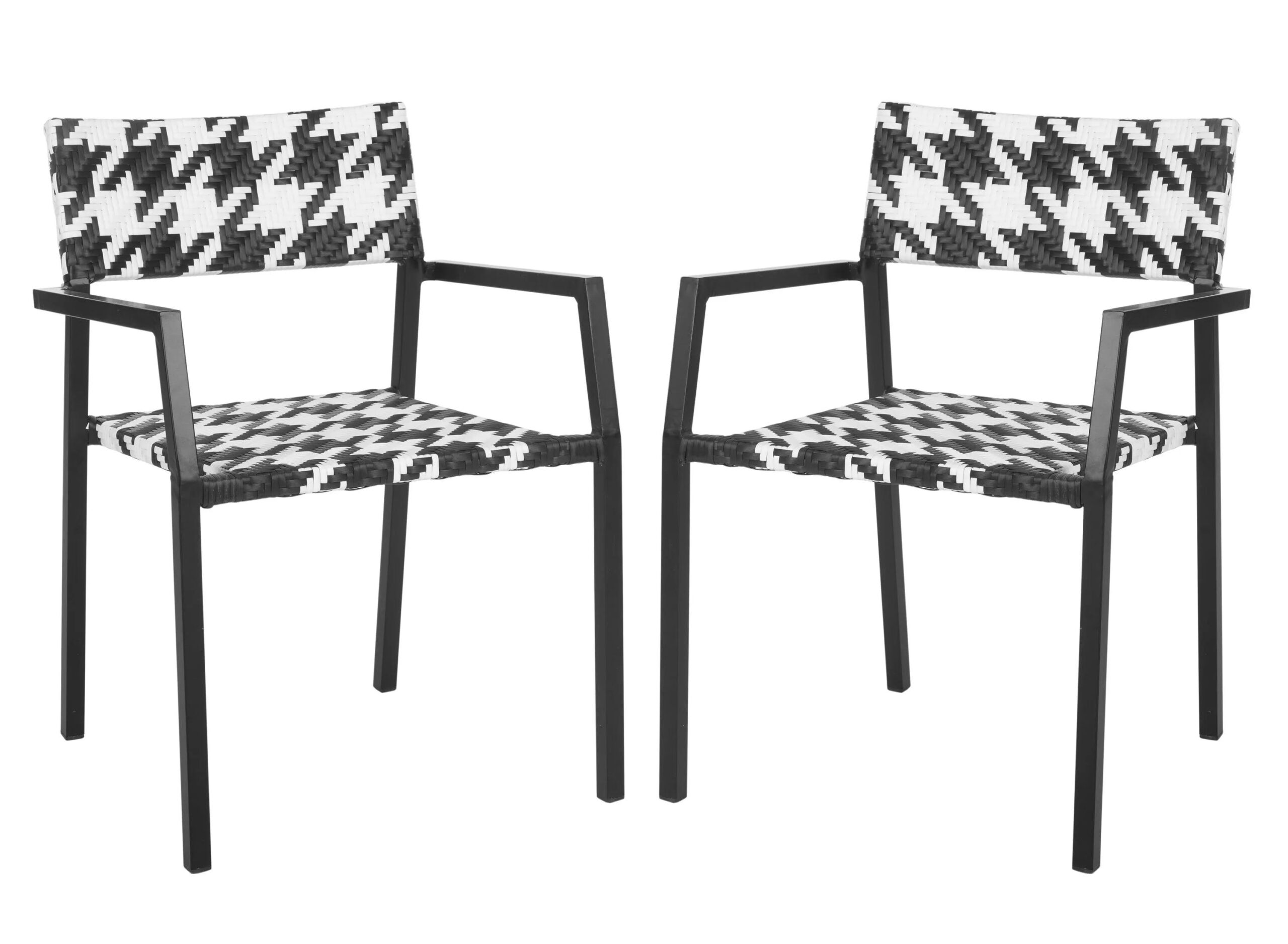The director’s chair got its start on movie sets, but the Winslo arm chair by Safavieh is a fashion savvy update for contemporary outdoor living. A sturdy aluminum frame is contrasted with a weather resistant PE wicker seat and back in a bold and lively oversized hounds tooth check.