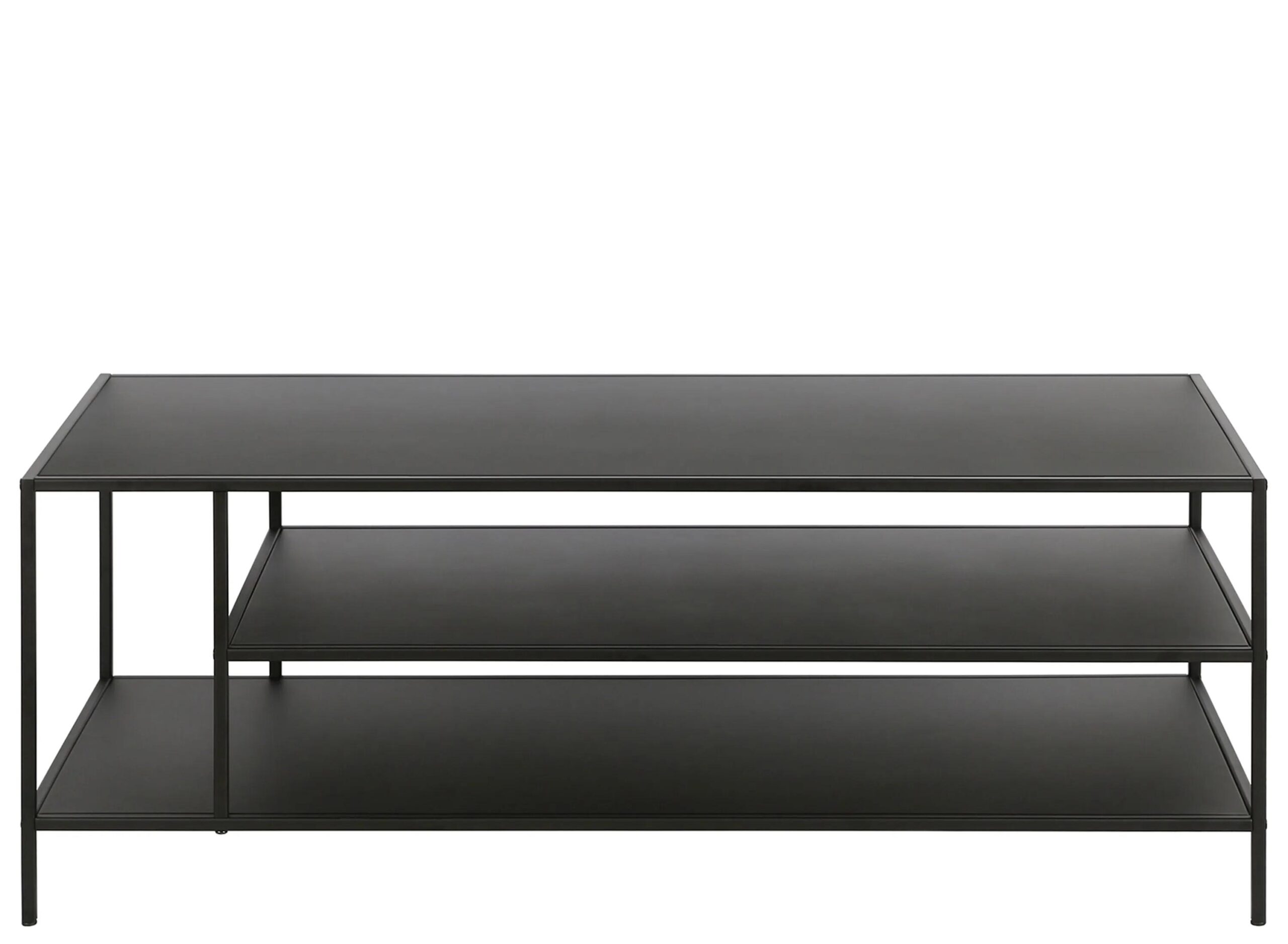 A must-have for living areas and entertainment spaces, this Winthrop coffee table is the perfect center piece. Crafted from steel it strikes a clean-lined silhouette and boasts a metallic finish and glass shelves for a look that blends with nearly any color palette.