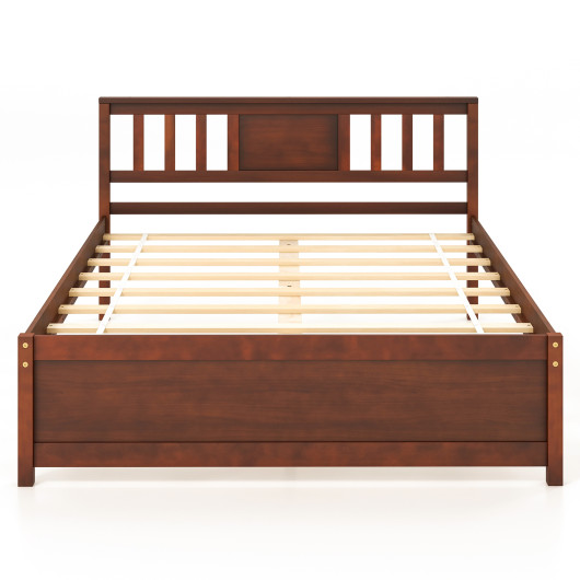 Wooden Platform Bed with Headboard and Wood Slat Support-Full Size