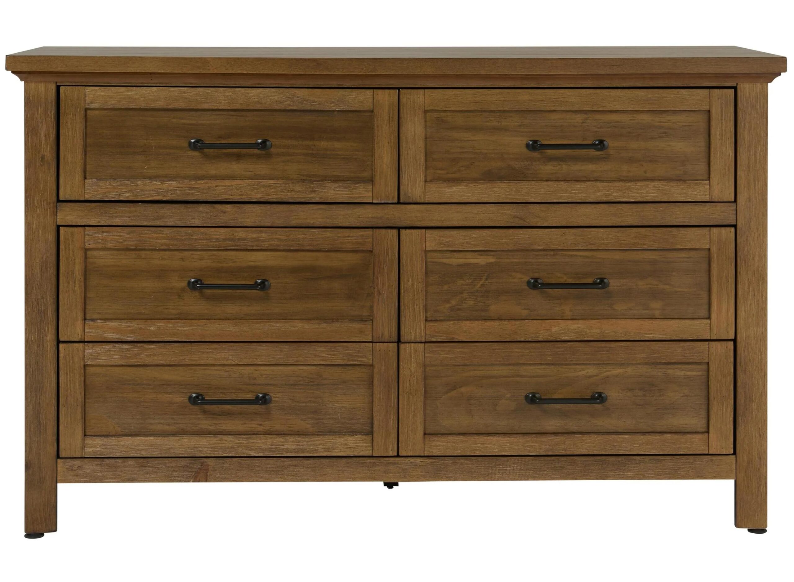 Bring modern farmhouse charm and lasting functionality to your nursery with the beautifully crafted Wyatt dresser. Designed with a warm, rustic finish and simple metal hardware, it blends classic appeal with the modern storage capacity of six ample drawers.